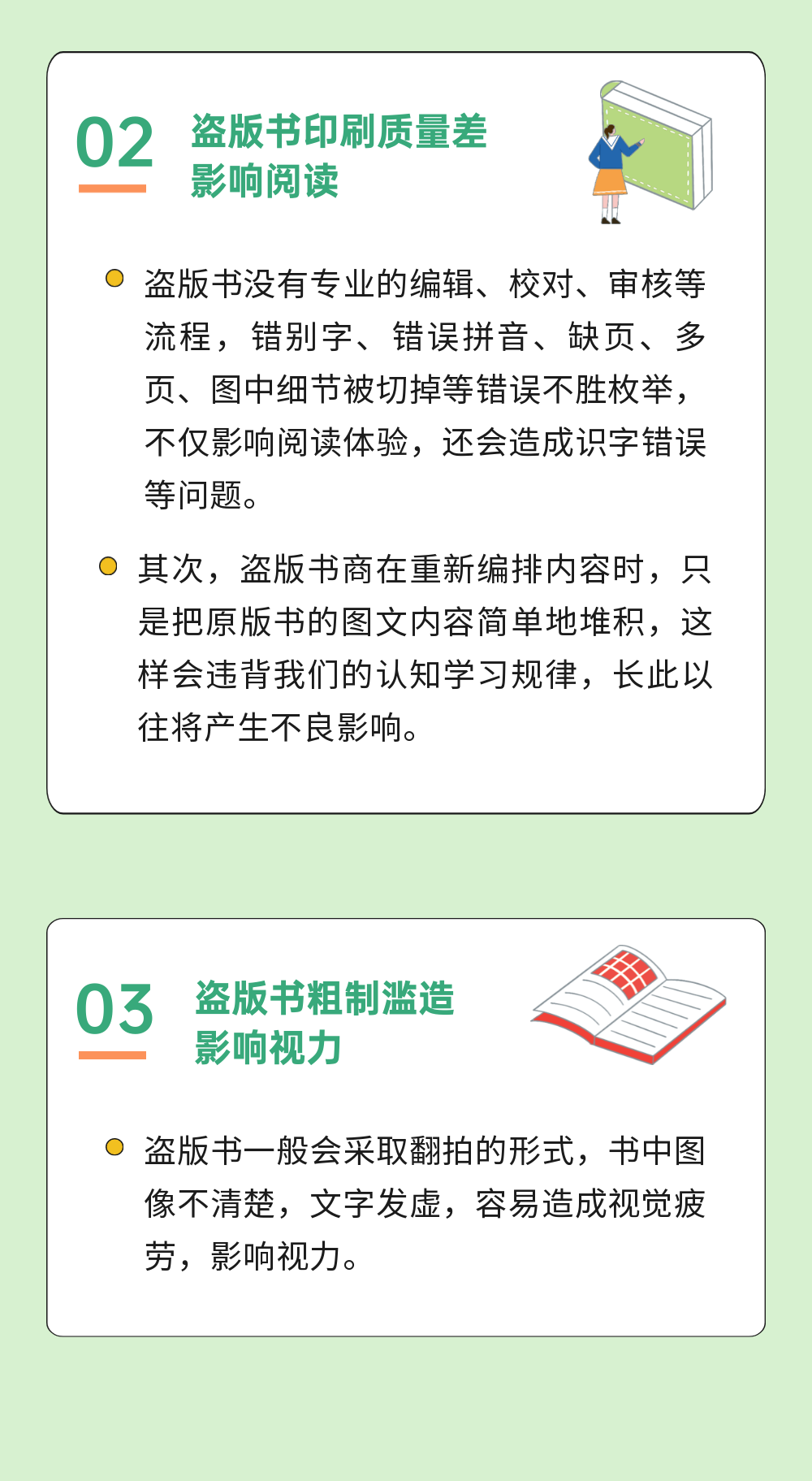 “油墨味大,看久了头晕恶心,太坑孩子了!”今年年初,李女士发现,自己为孩子网购的一本小学三年级语文教材书的纸张很软、分量很轻,翻开之后有一股浓烈的刺鼻味道,书本内容图文模糊甚至出现重影,并且错别字频出。而这本教材,是她在某网络购物平台一家销量排名靠前的店铺购买的。通过与其他学生家长的交流后李女士才得知,从书店购买的课本定价为7.63元,而自己从网上购买的书价为13.88元,且还是折后价格。“盗版还比正版贵,质量还这么差!”李女士向有关部门反映后,该图书被认定为盗版图书。