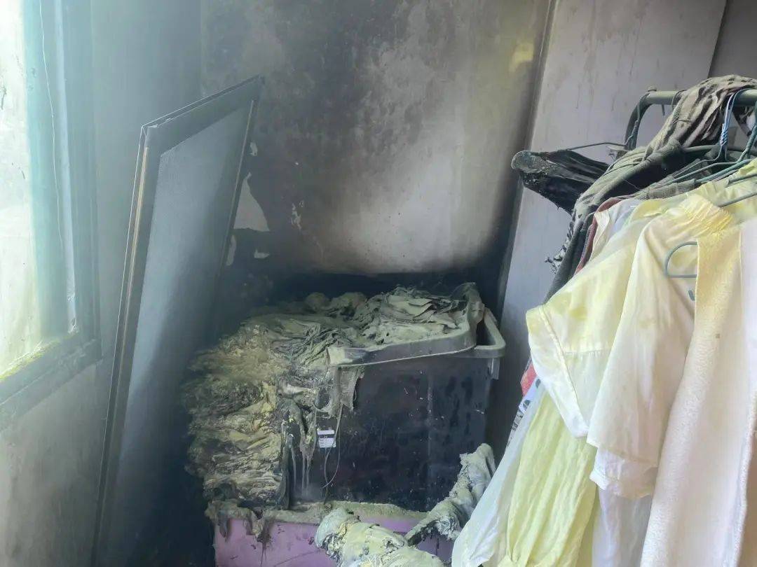 平时我有抽烟的习惯,家里会随便放打火机。事发当时家里只有姐弟俩在,弟弟他可能是贪玩,就用打火机玩火,结果没控制好,引燃了收纳盒上的衣服。