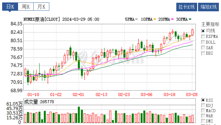 国际油价方面,受主要石油生产国减产政策等因素影响,近期国际原油价格持续走高,WTI原油向上突破83美元/桶,创近期新纪录。