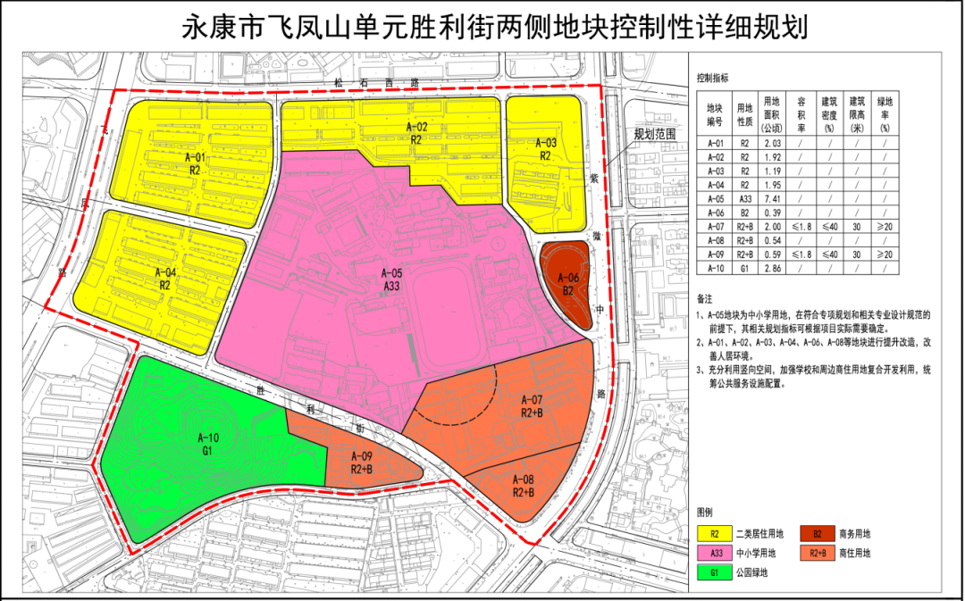 根据永康市“五战双强”行动实施方案,为推进胜利街道路延伸区块城市更新,保障明珠学校提质需求,打通胜利街断头路,永康市自然资源和规划局组织编制了《永康市飞凤山单元胜利街两侧地块控制性详细规划》。