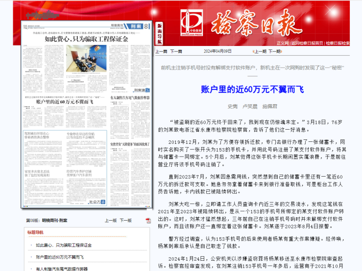 刘某大吃一惊,立即请工作人员查询卡内近三年的交易流水,发现这笔钱在2021年至2023年被陆续转出,是从一个153的手机号所绑定的某支付软件账户转出的。这时,刘某才猛然想起,三年前自己在注销手机号码时并未解绑支付软件账户,而且该账户还一直绑定着这张储蓄卡。刘某遂于2023年8月4日报警。