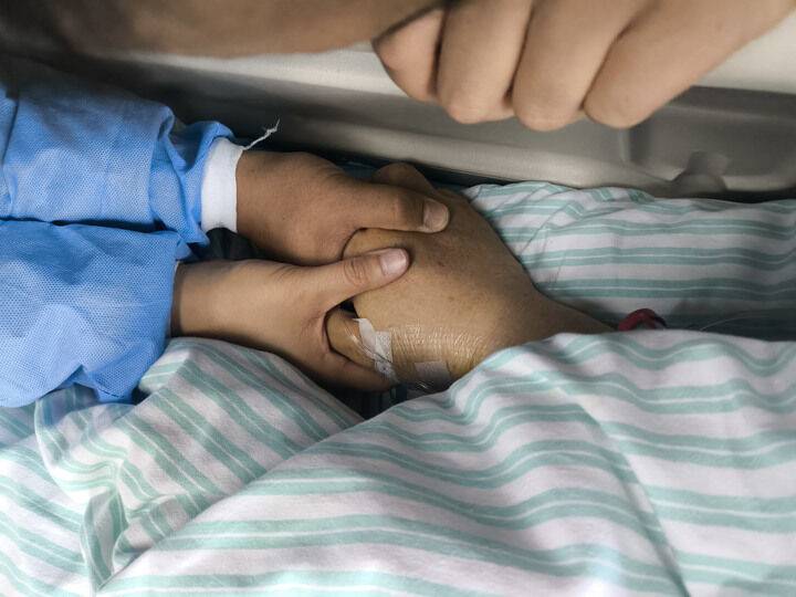 进入手术室前,家人紧紧握着王长林的手。沈云建 摄