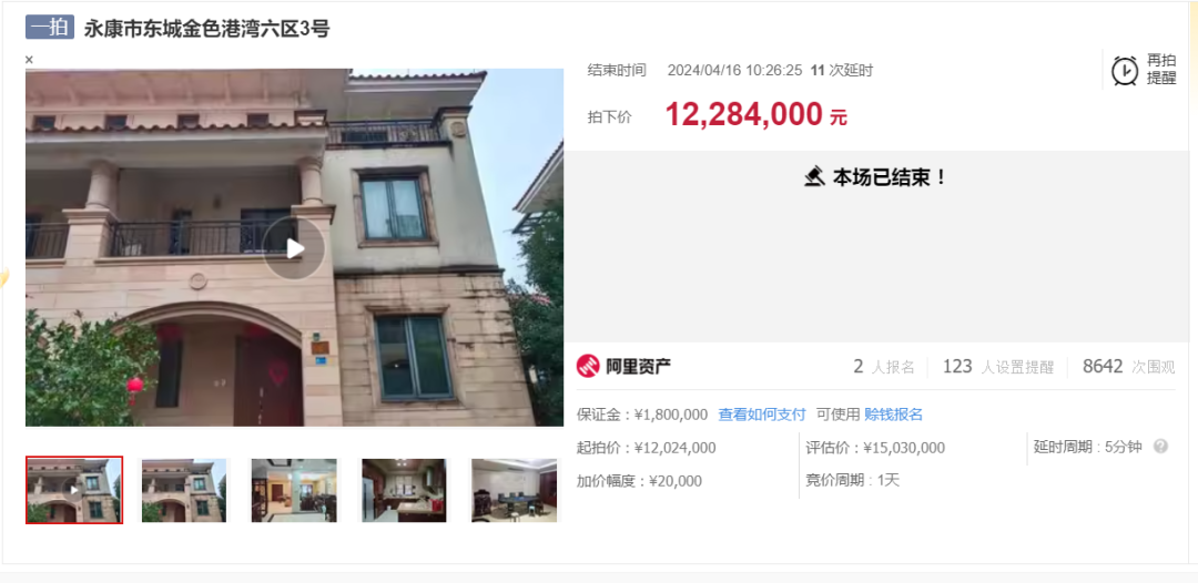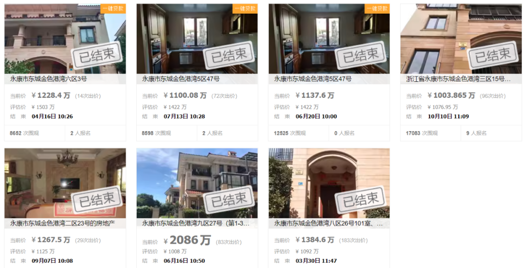 昨天,根据淘宝网司法拍卖平台信息显示,位于永康市经济开发区金色港湾的一幢排屋法拍成交