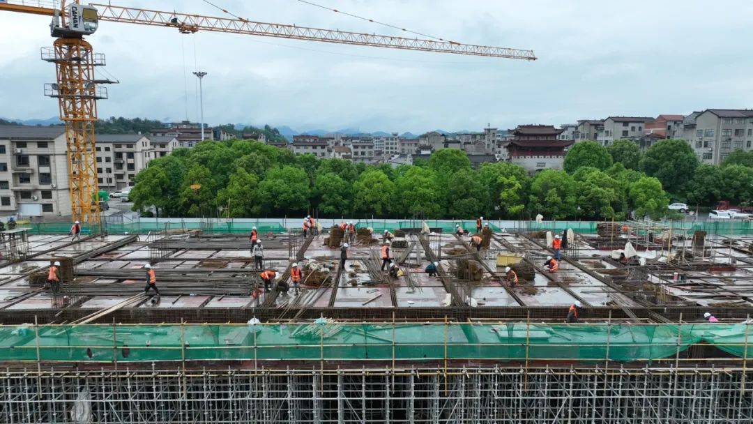 无独有偶,在总部动感新天地项目的施工现场,头戴安全帽的工人们忙碌在自己的工作岗位上,穿梭在钢筋木板之间。该项目占地面积20111平方米,总建筑面积138898平方米,将打造成集开放办公、便携式经济居住、打卡式运动休闲、沉浸式数字展馆为一体的综合体。目前项目地下室主体工程已基本完成,300余名工人假期不休息、抢工期,力争在2026年10月1日正式开业。