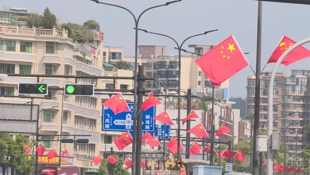 据了解,不止九铃路全线,在金都路、丽州路等城区各主干道、精品街区同样能看到一面面国旗随风飘扬的美好景象。