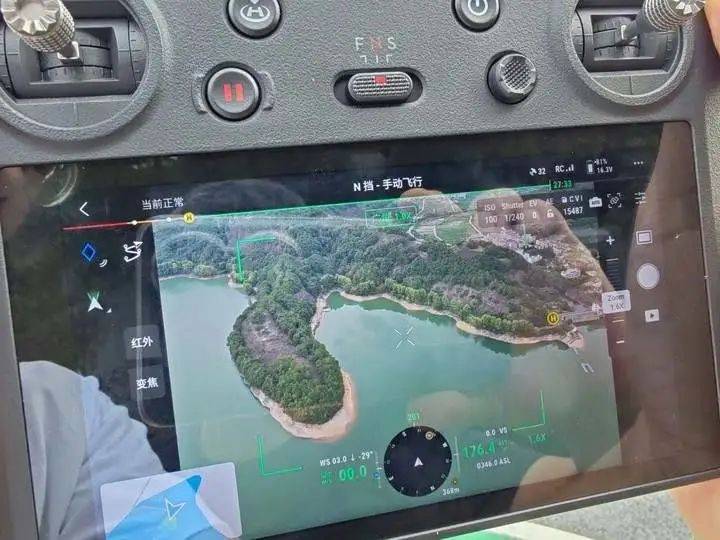 近日,一架无人机在永康市杨溪水库上空来回盘旋,操作员陈志平熟练地操纵着遥控器,不时放大回传画面,以看清库区的每一个角落。