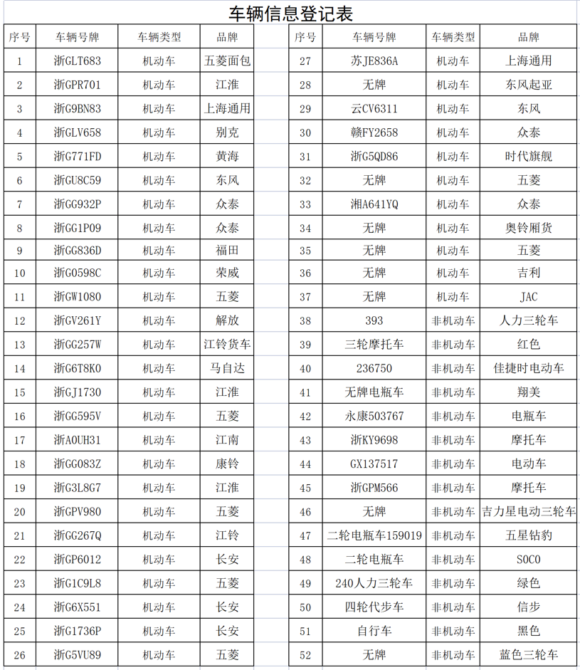 附:车辆信息登记表
