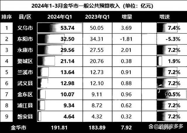 2024年第一季度,金华市在经济发展的重要指标——财政收入上达到了191.81亿元,居全国及浙江省前列。
