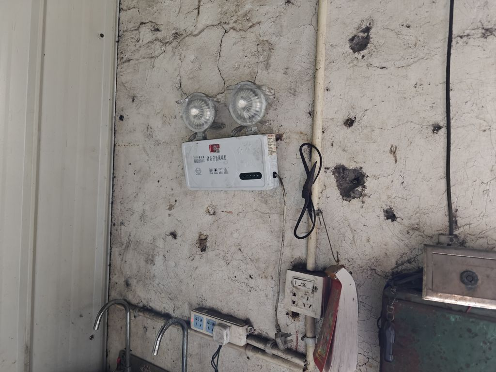 具体隐患:1.车间停放电动车;2.应急灯未通电。