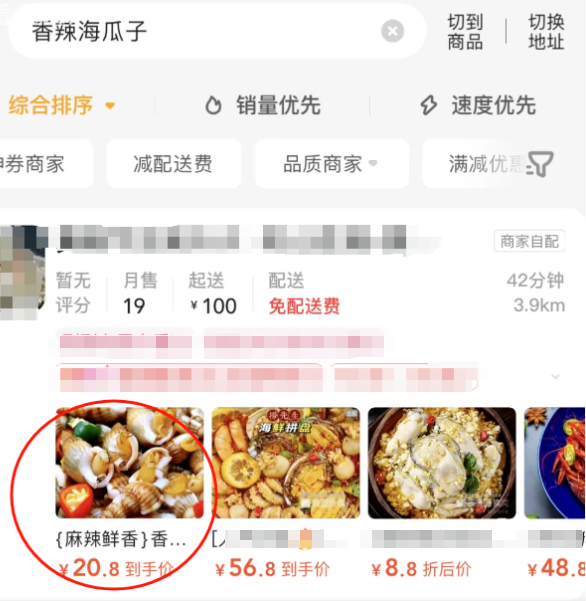 记者在外卖平台搜索“香辣海瓜子”,发现仍有不少商家疑似售卖织纹螺。当记者尝试下单时,一家以“海瓜子缺货”为由,取消了订单。另一家接单后迟迟没有配送,电话也无法接通,直到两小时后商家才取消了订单。随后,记者在一家名为“北伴岛小海鲜”的店铺,下单成功。