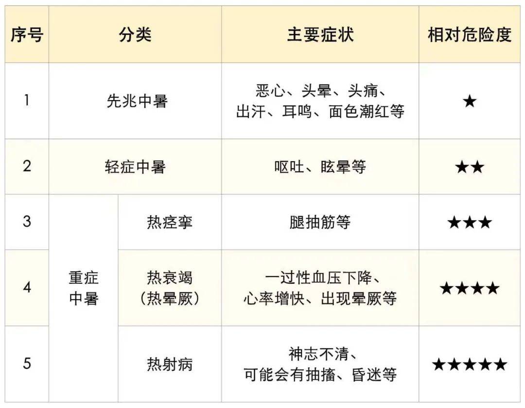 需注意的是重症中暑,它包括热痉挛、热衰竭和热射病3种类型。