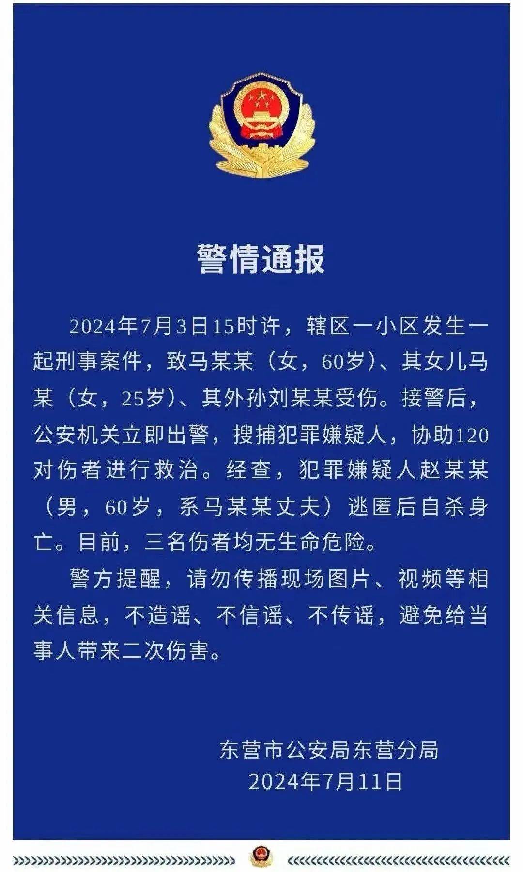 11日18时32分,山东东营市公安局东营分局发布警情通报称: