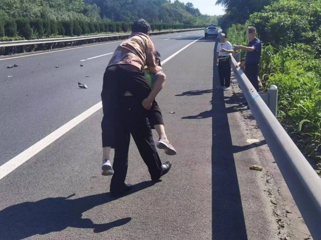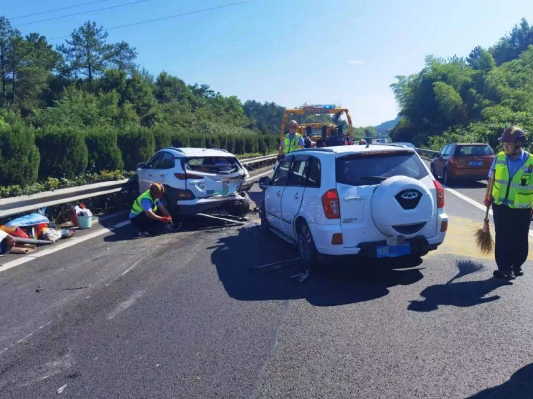 就在民警和施救人员下车准备将猪带离时,突发巨响!一辆小车为躲避小猪,被紧随其后的另一辆小车追尾,两车上的人员均有不同程度的受伤。金华市公安局高速交警支队三大队二中队民警洪洁明第一时间将受伤乘客背至硬路肩外安全区域。经过一个小时的紧张施救,终于使现场恢复了正常通行。