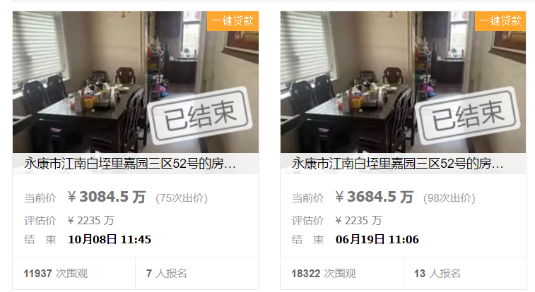 3084.5万!永康白垤里别墅再次法拍成交价直降600万!