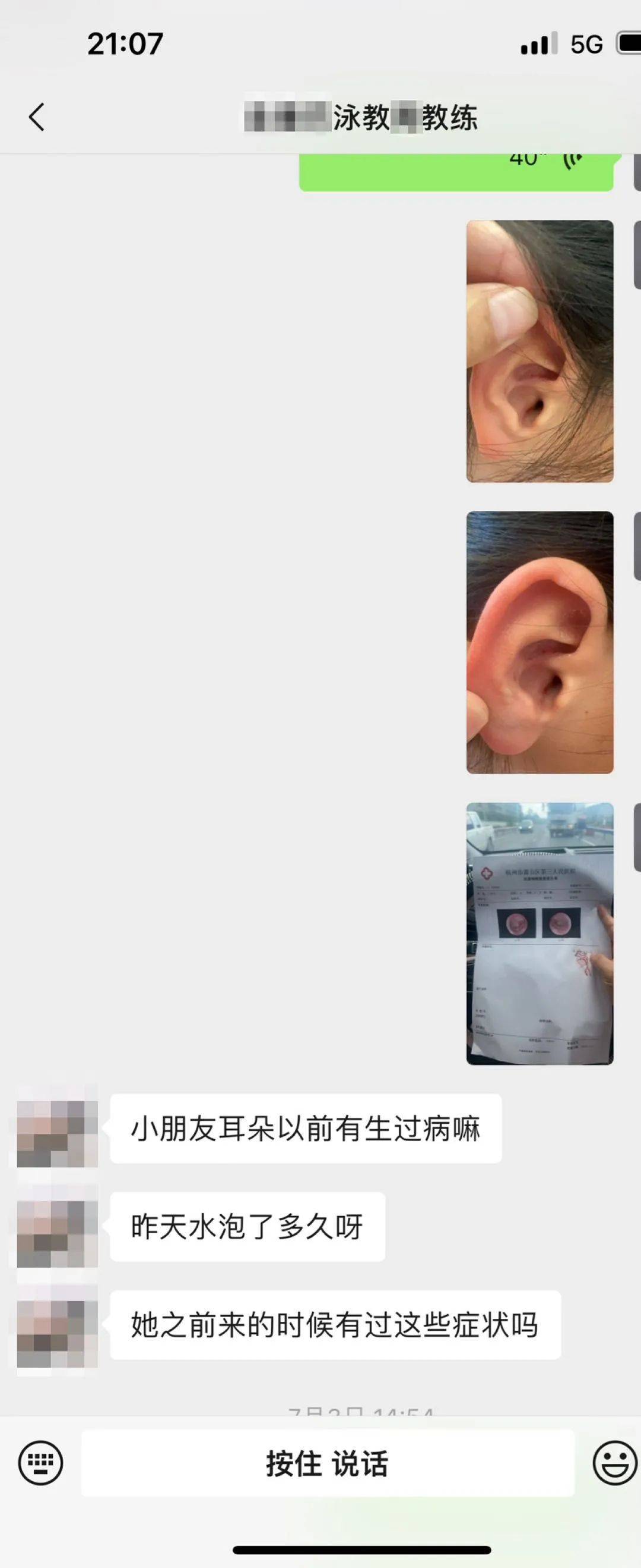 近日,杭州萧山一家长在本地论坛发帖称,她给两个娃报了暑假游泳班,然而,游完泳回来后孩子就发烧了。第二天起床后,孩子说耳朵疼,该女士马上带着孩子去了医院,发现得了中耳炎。家长说,本来夏天游泳是孩子最快乐