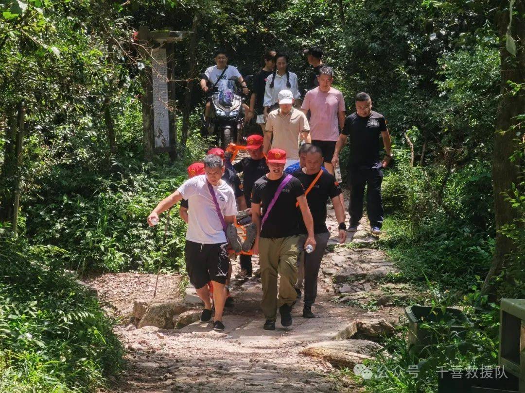 2024年7月28日,星期日,中午11点40,烈日高悬,酷热难耐,此时千喜却收到紧急求救:石城山健身器材第一平台往998方向,一位勇战高温的的爬山人,不慎崴了脚! 千喜救援迅速响应!队员们顶着烈日,